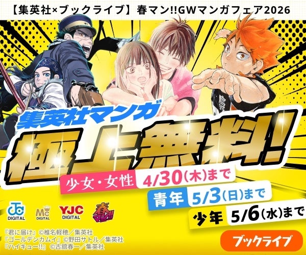 TOPPANホールディングス株式会社のグループ会社である、株式会社BookLive(本社:東京都港区、代表取締役社長:淡野 正)は、運営する総合電子書籍ストア「ブックライブ」にて、4月28日(火)から5月6日(水・祝)までの期間限定で、GW限定キャンペーン「集英社×ブックライブ 春マン!!GWマンガフェア2026」を開催します。