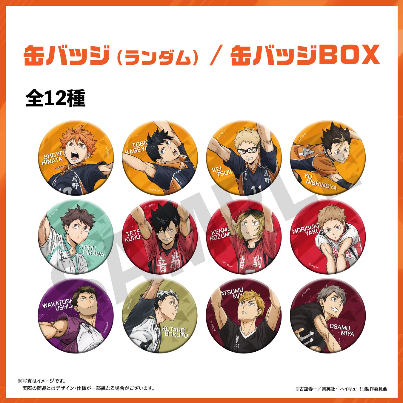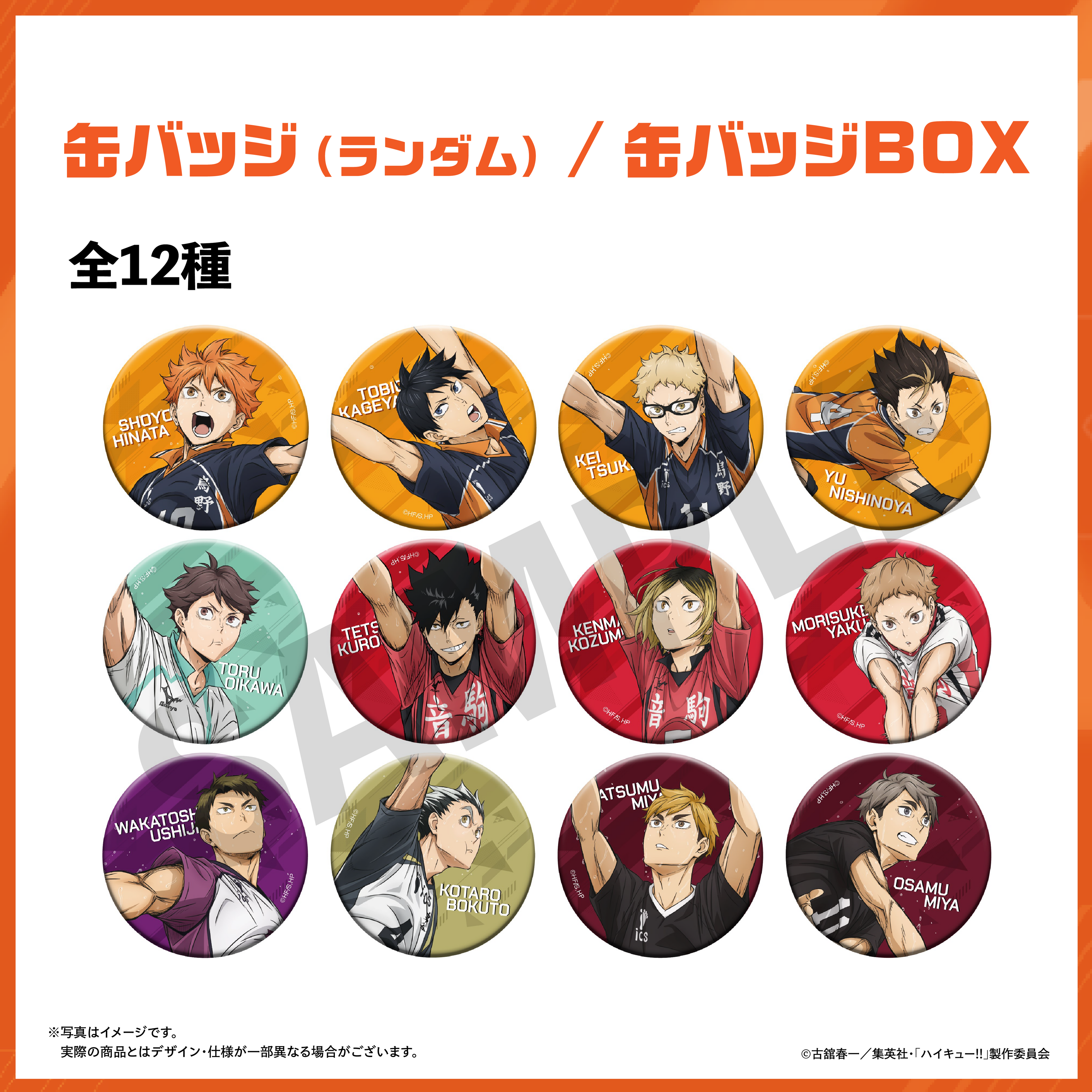 全12種『ハイキュー!!オン ザ コート』描き下ろしビジュアルを使用したオリジナル缶バッジ
