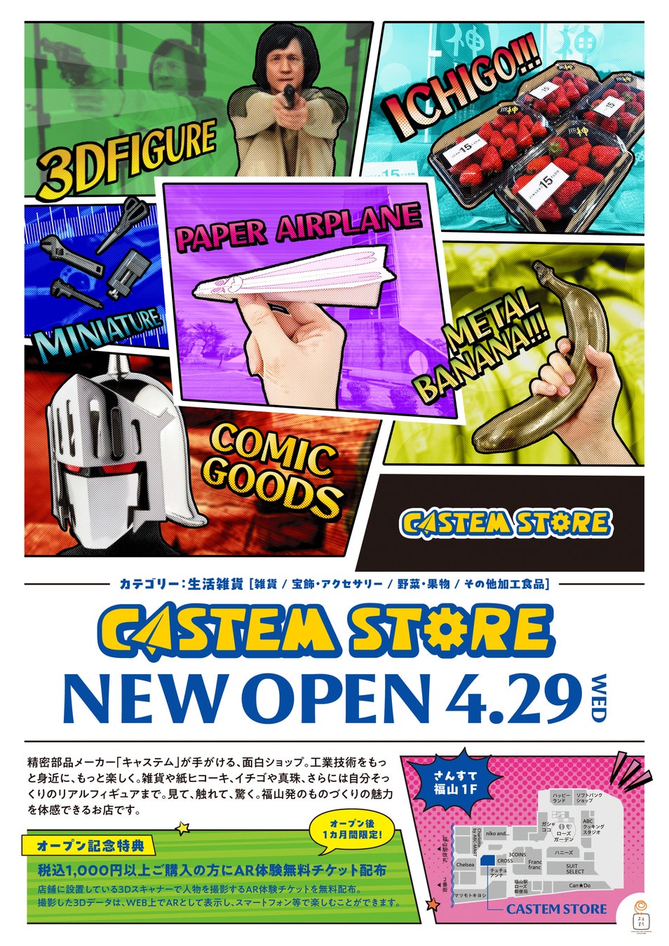 2026年4月29日(水)の10時より、福山駅直結の商業施設「さんすて福山」に、精密部品メーカー「キャステム(https://www.castem.co.jp/)」による新店舗「CASTEM STORE」がオープンします。