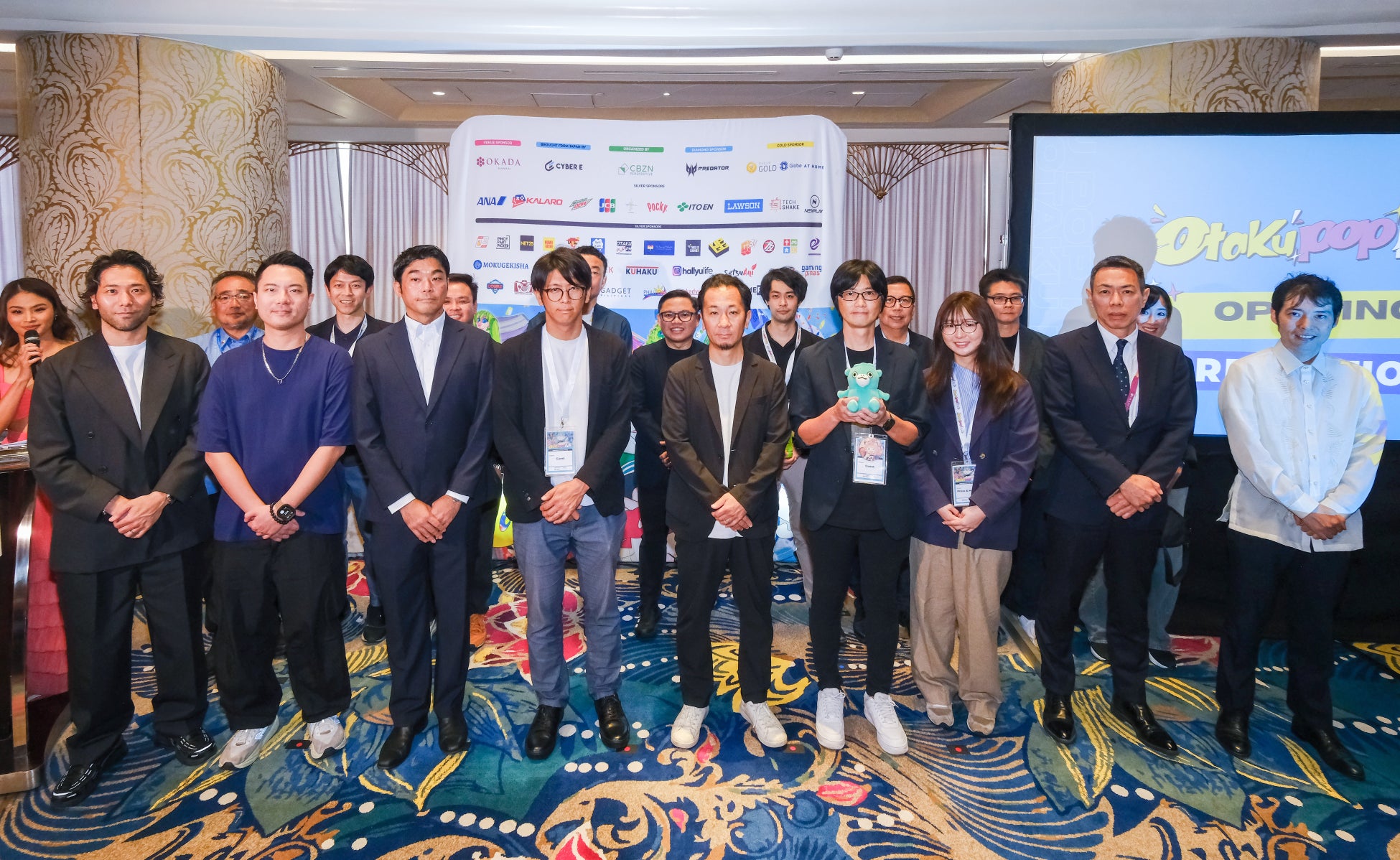 初日の4月25日には、複数のメディアが集まる中、オープニングレセプションが行われました。在フィリピン日本国大使館 広報文化センター所長/一等書記官 松田茂浩氏、TIGER RESORT, LEISURE AND ENTERTAINMENT, INC. 代表取締役社長 兼 COO 佐藤信樹氏、株式会社CyberE 執行役員 大﨑章功が登壇し、マニラからアジアへ日本カルチャーを発信する本イベントの意義を語りました。続いてCBZN COO Ayee Calma氏の挨拶により、2日間にわたる熱狂の幕が開けました。