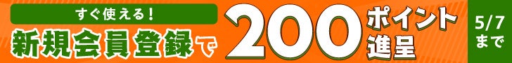 無料の会員登録をするだけで、新規会員様には今だけ限定で200ポイント付与。GWデイリールーレットの景品と、両方ゲットできるお得な期間は今だけです!