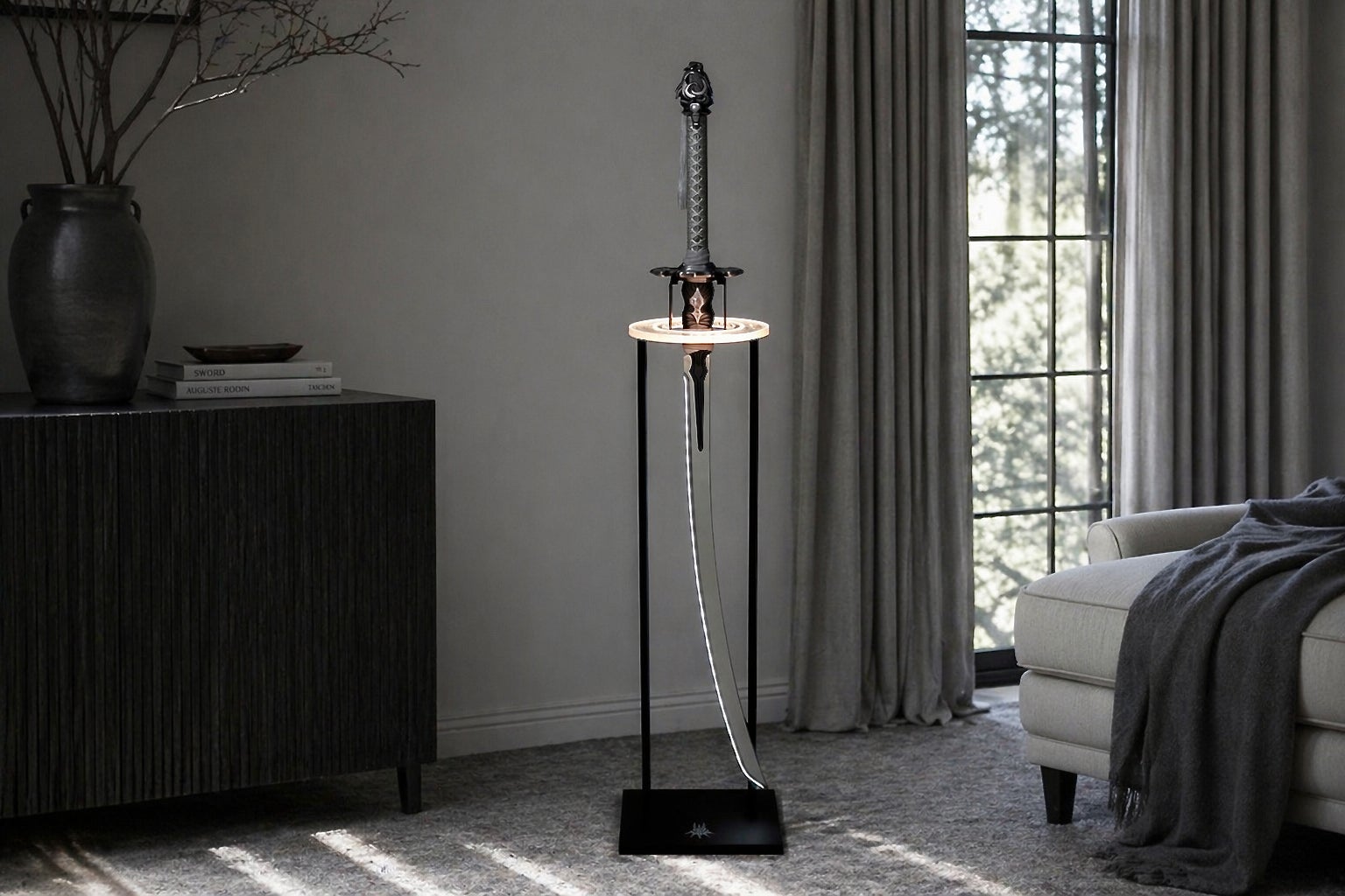 今回登場するコンプリート・セットは、「白の契約」がもつ独自の世界観や魅力を最大限に引き出すようにこだわった「専用ライトリング付きスタンド」を同梱。139cmの刀身を、日常生活の中で安全かつ幻想的にお楽しみいただけます。