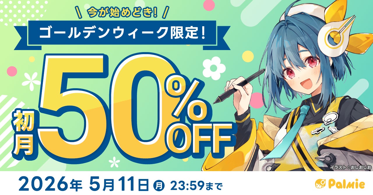 株式会社パルミー(所在地:東京都港区、代表取締役:大野英紀)が運営するパルミーは、受講料が初月50%OFFになるキャンペーンを本日2026年4月28日(火)12時00分より開催します。