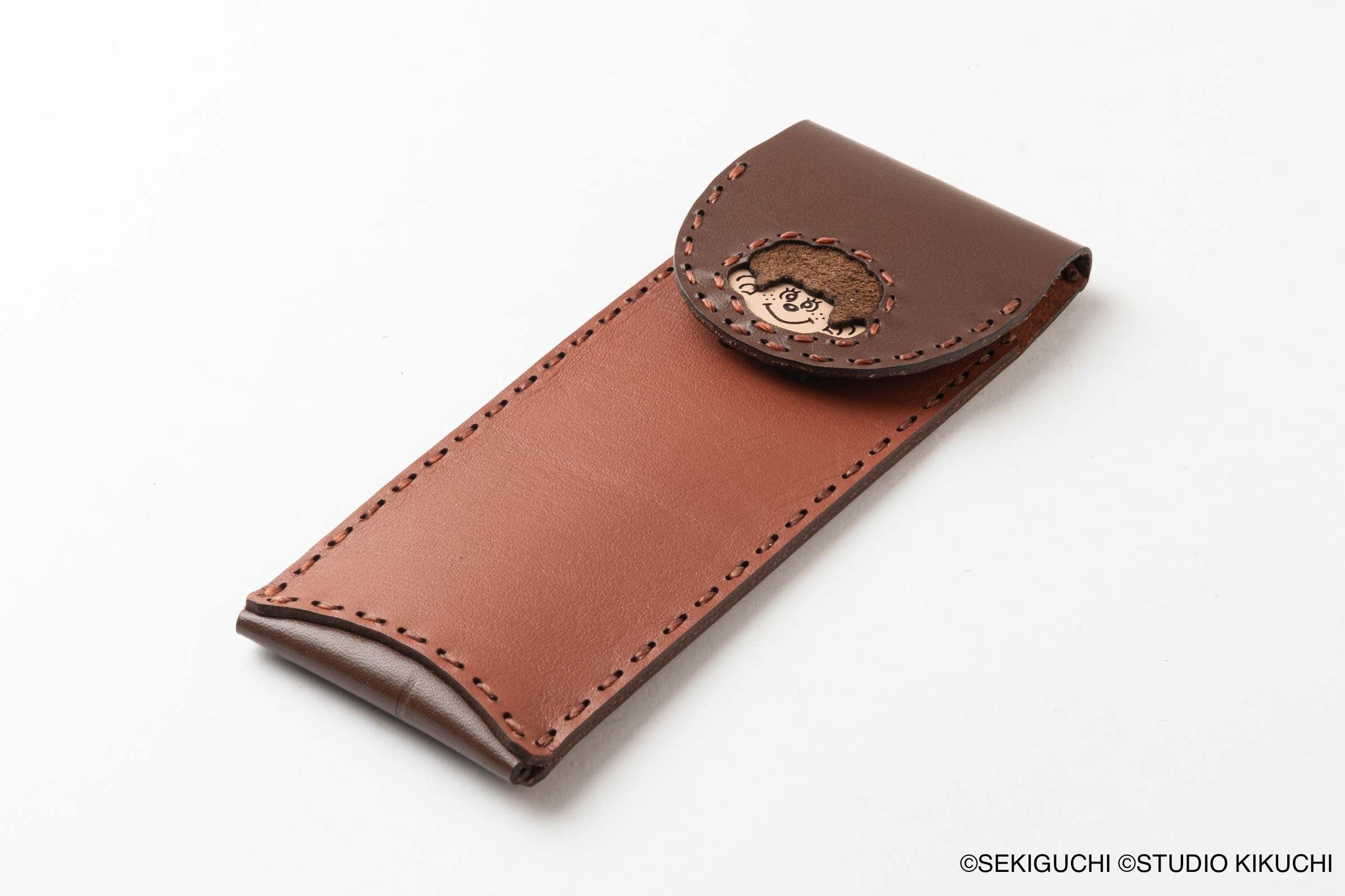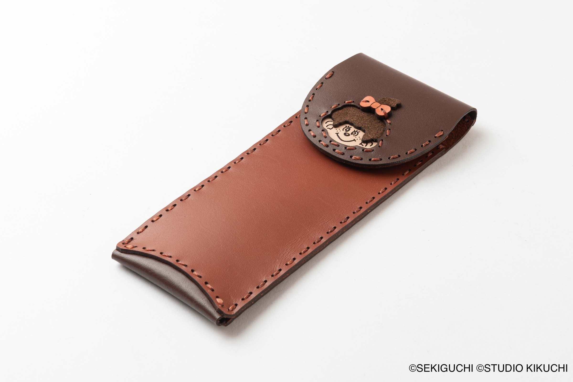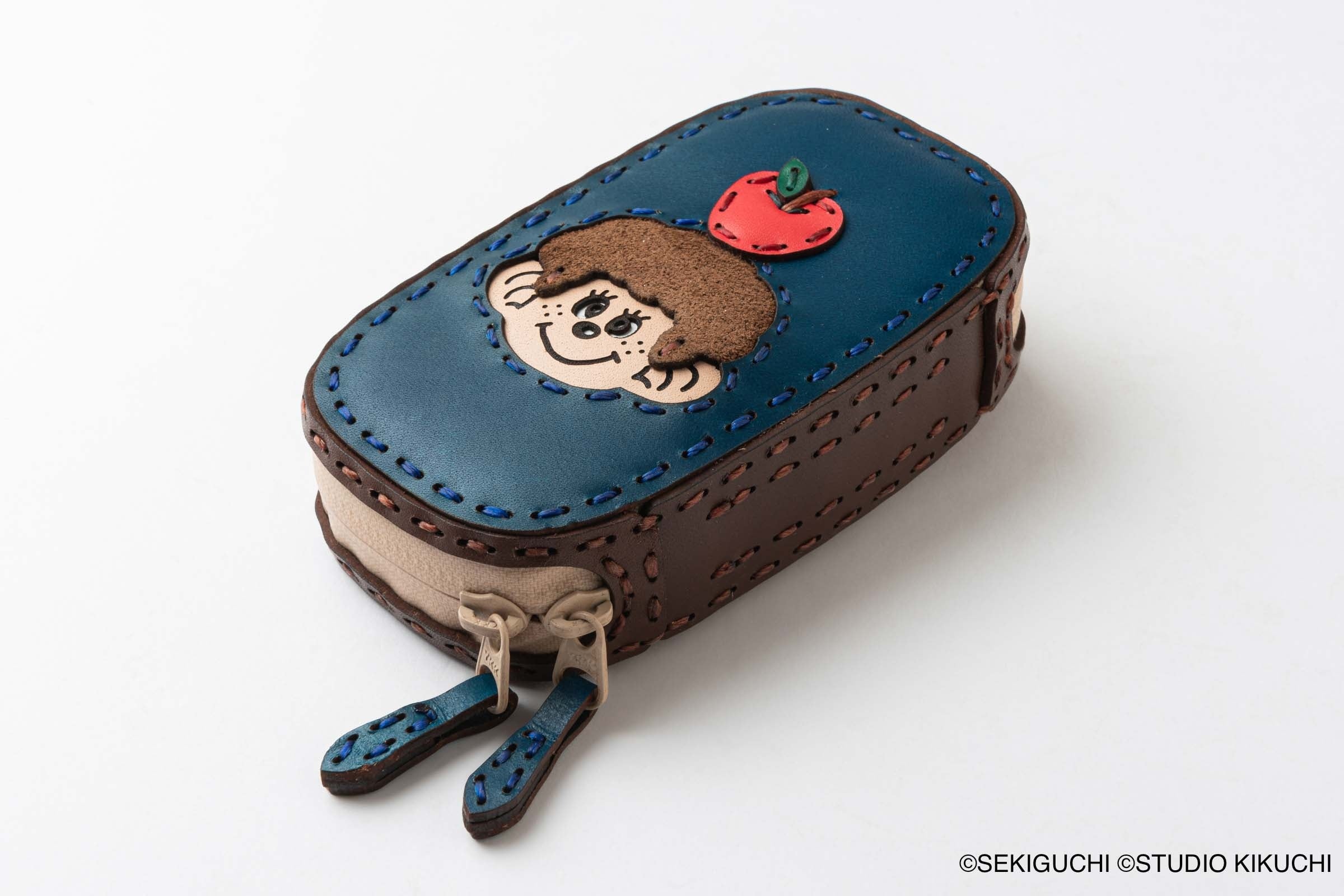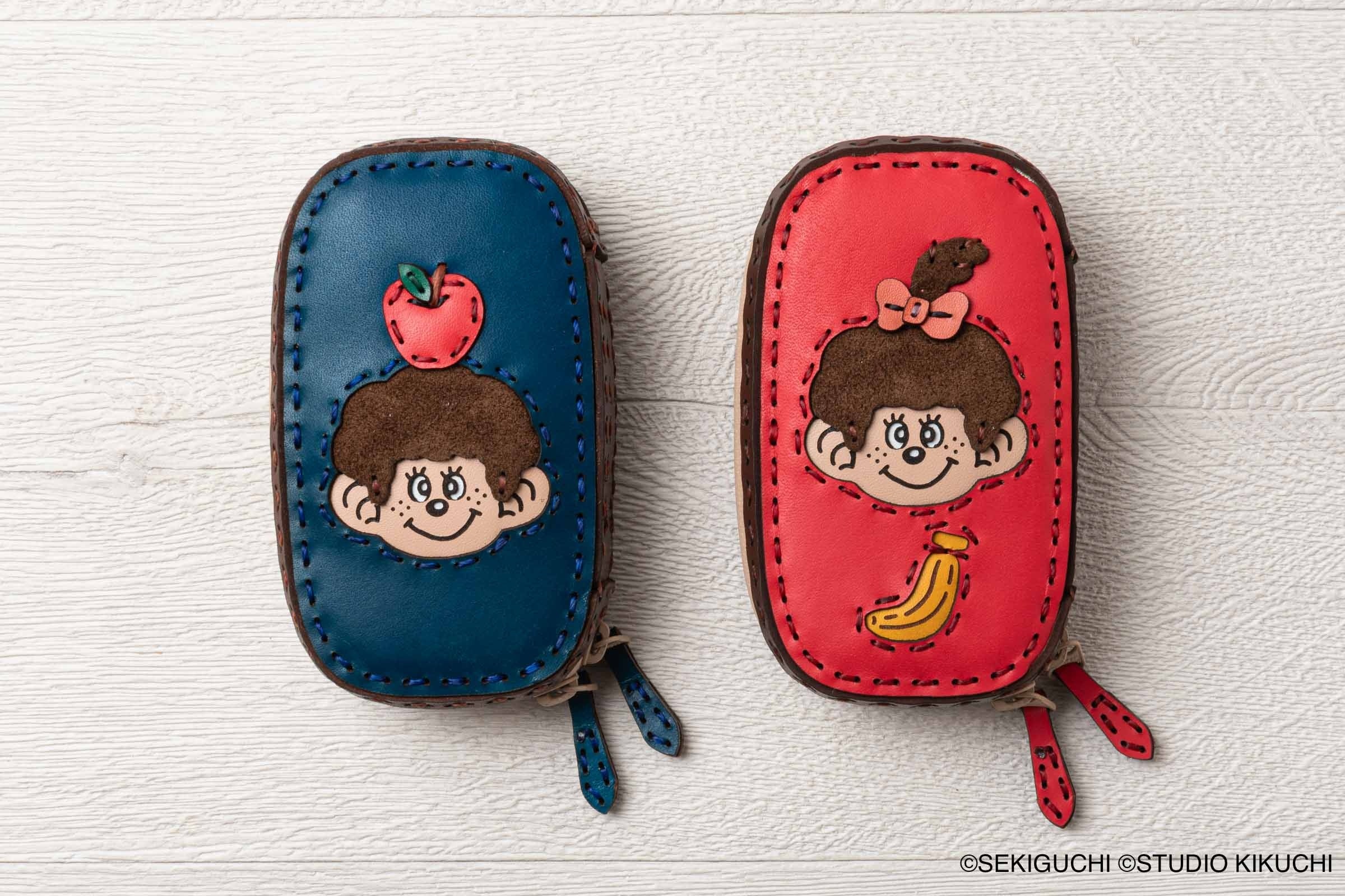 キーホルダー、ペンケース、カードケース、ブックカバー、マルチケースの5種類のレザーアイテムに、きくちゆうき氏の描くやさしい表情のモンチッチくん、モンチッチちゃんをそれぞれシンプルに配した、全10アイテムのラインナップ。