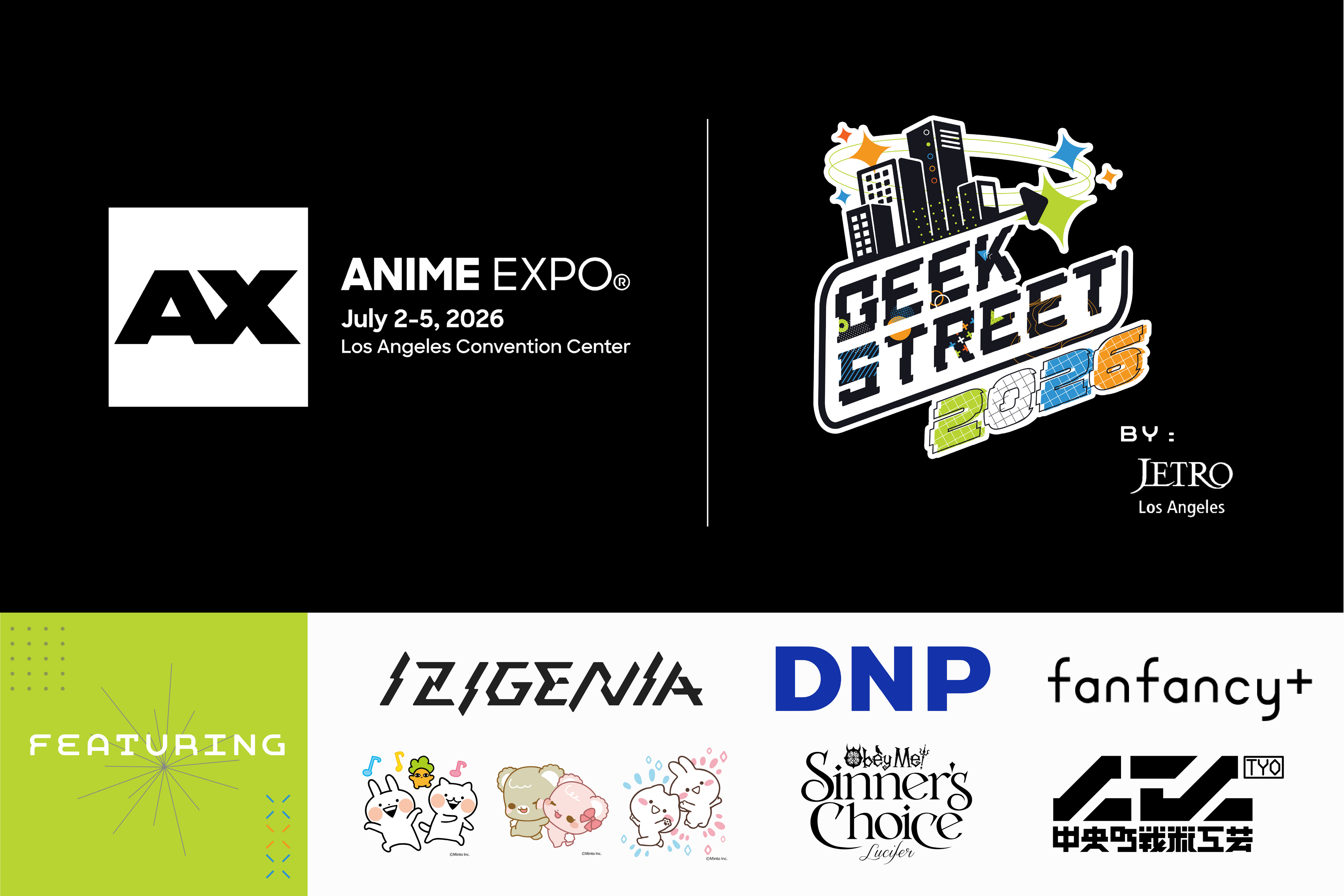Geek Streetでは、アニメ、ゲーム、VTuber、「kawaii」カルチャー、音楽など、多彩なコンテンツが一堂に集結します。幅広い方々にお楽しみいただける空間として、さまざまなジャンルの魅力をお届けします。