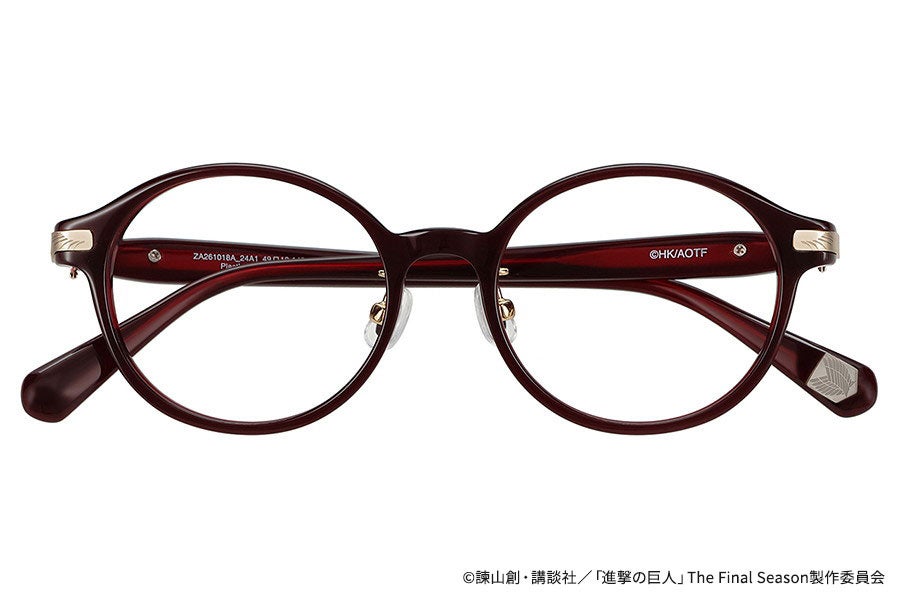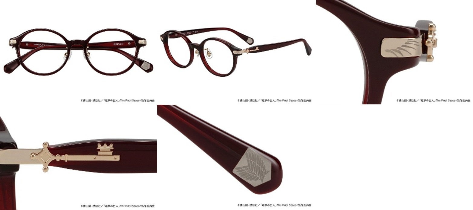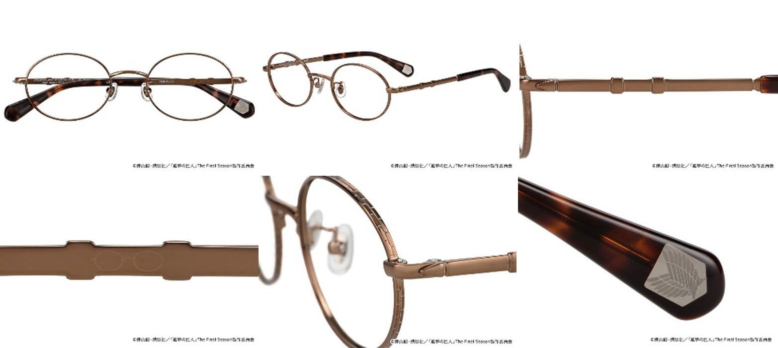 ジャンの髪色をイメージしたカラーリング。テンプルのメタル部分には立体機動装置のベルトのデザインを。