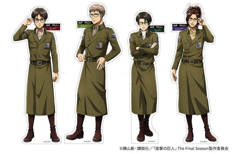 Zoff 池袋サンシャインシティ・アルパ店 エレン・リヴァイ、Zoff 名古屋パルコ店 エレン、Zoff グランフロント大阪店 リヴァイ、Zoff 京都河原町店 ハンジ、Zoff 福岡パルコ店 ジャン