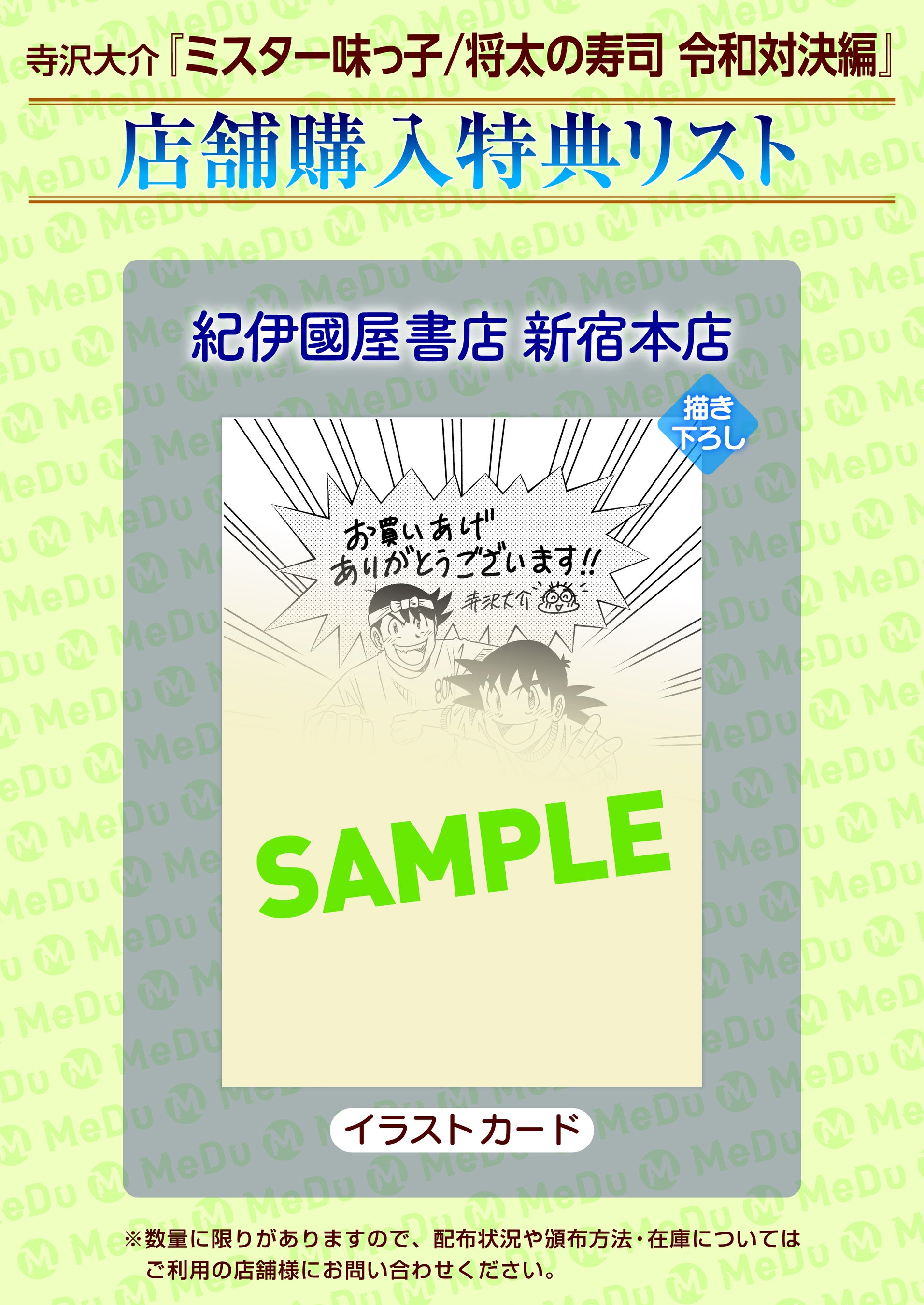 株式会社ジーオーティー(本社:東京都港区、代表取締役:吉永敦仁)はMeDu COMICS レーベルより2026年4月30日にコミックス『ミスター味っ子/将太の寿司 令和対決編』(著:寺沢大介)を発売いたします。