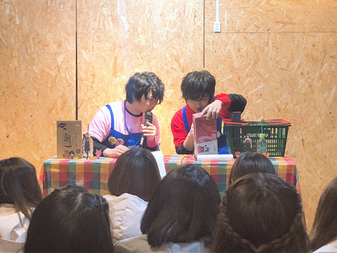 ▲1日店長として商品をプレゼンするお二人…!
